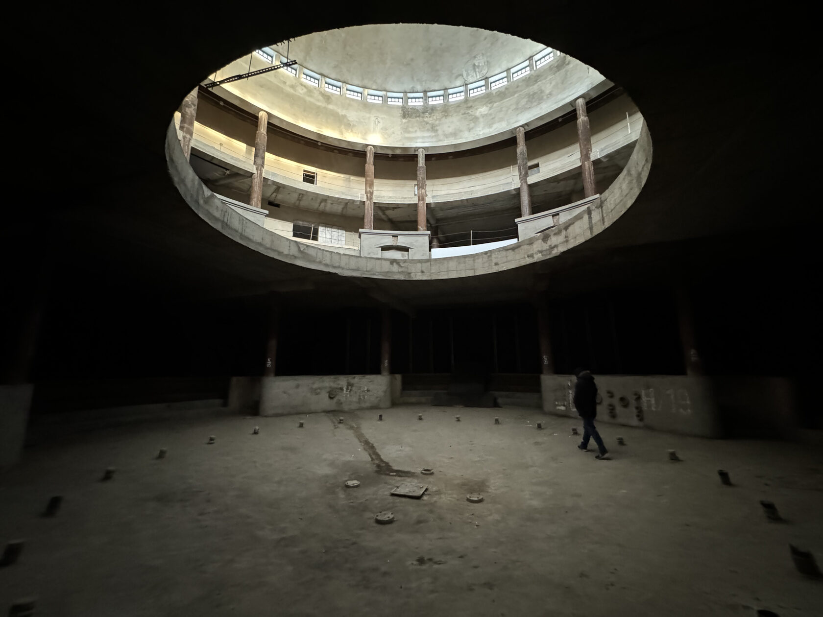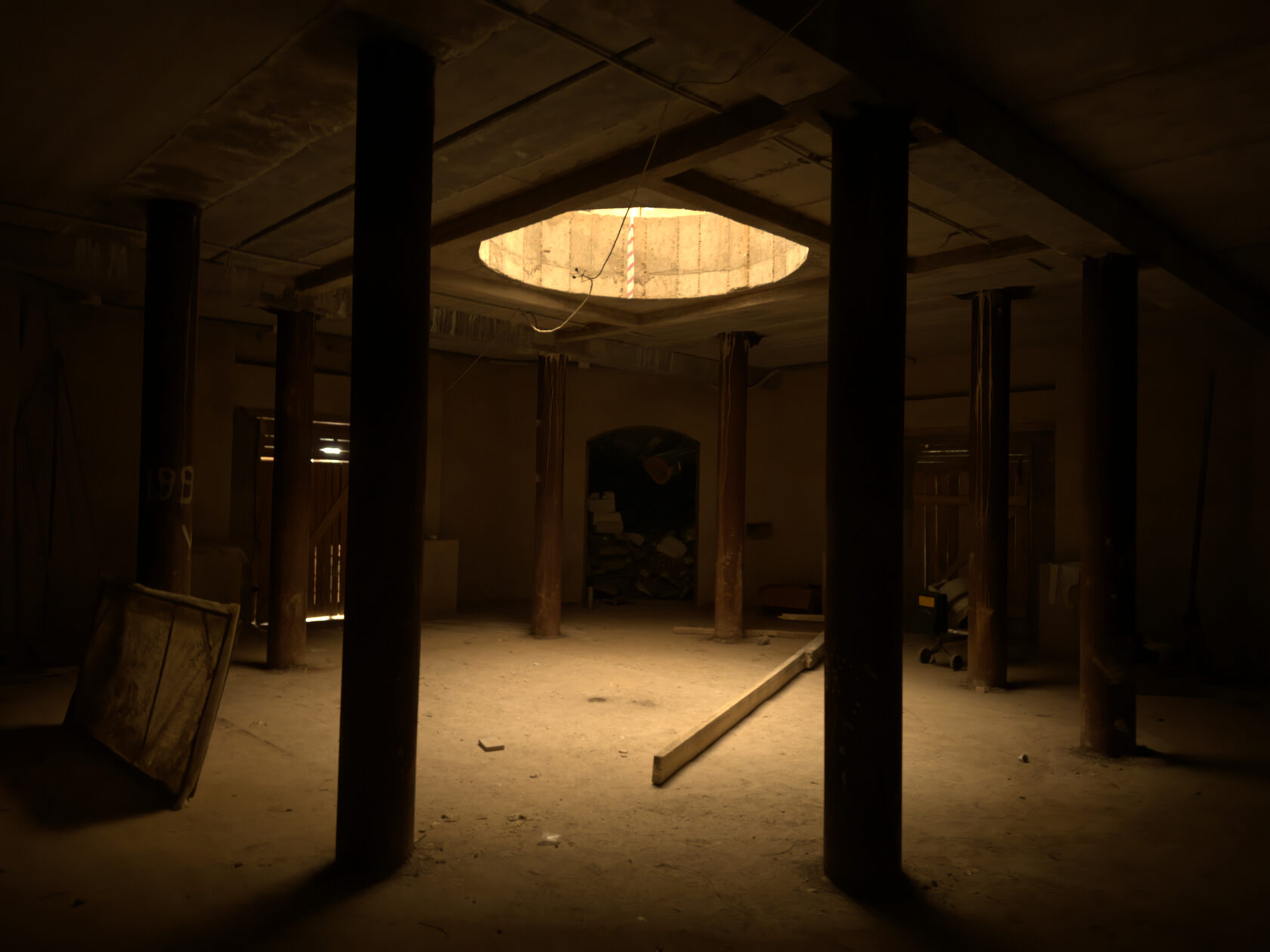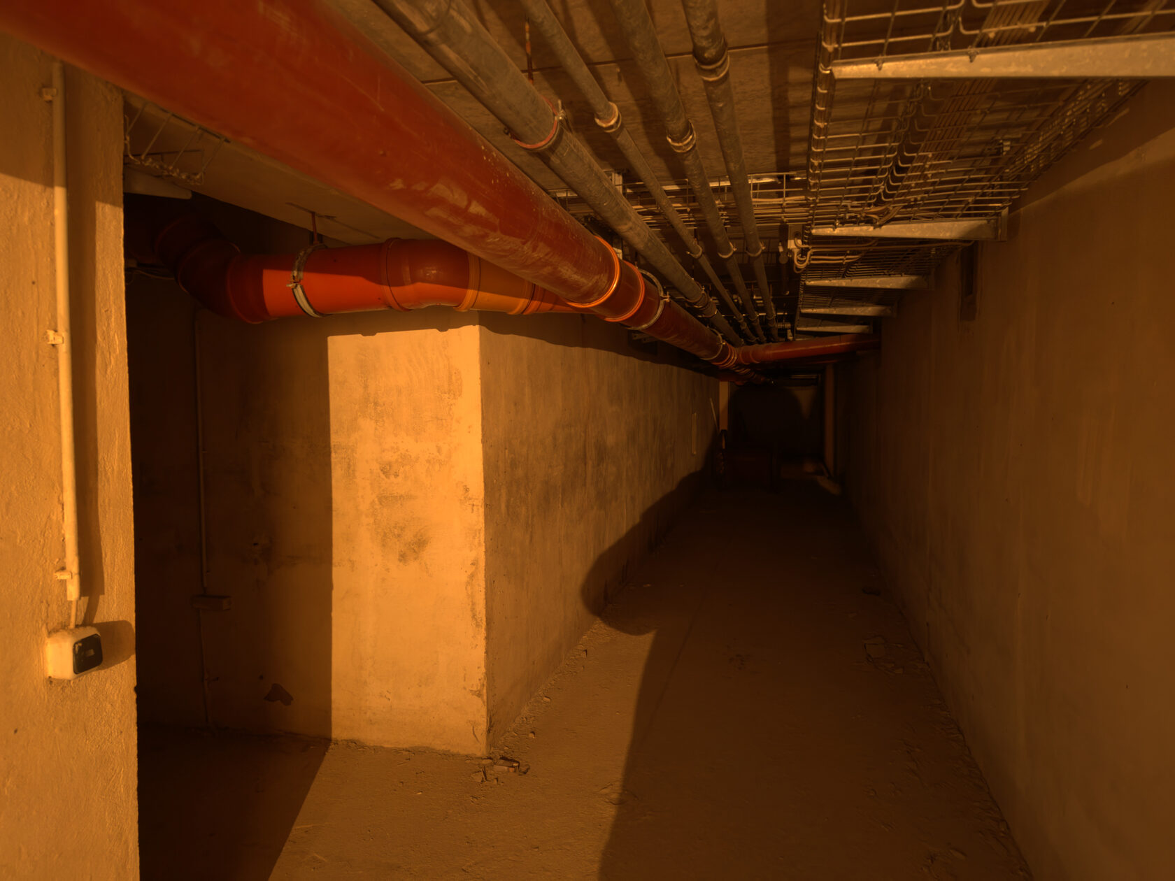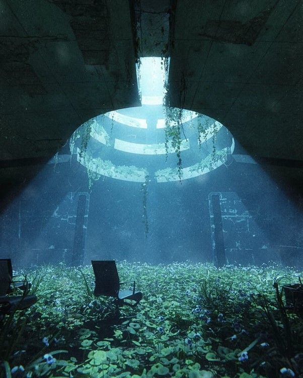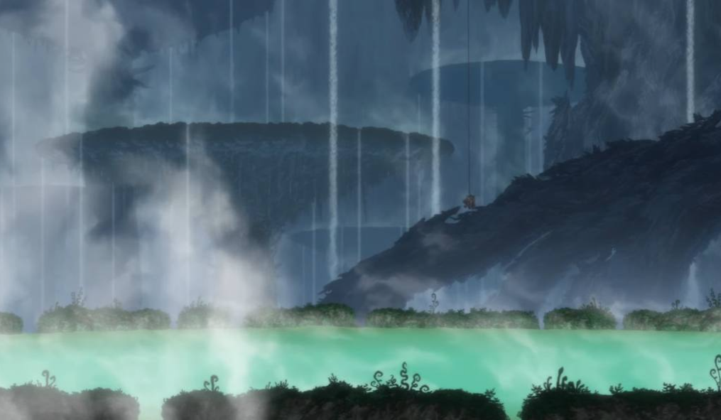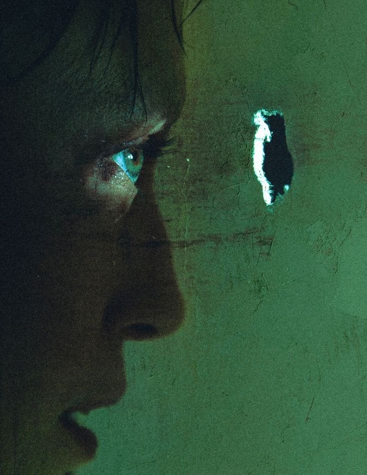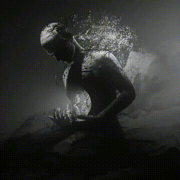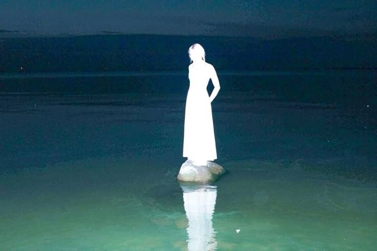На первом куплете Ray оказывается в локации, где выстроено небольшой пруд с голубой водой. Добавляем в эту сцену много хейза. Эта сцена вдохновлена аниме, а также похожа на серные озера в вулканических кратерах. Вокруг озера и на этажах локации протянуты провода. Снимаем так, что артистка сначала пытается обойти его, но пар ей мешает, она боится этой воды. Но потом она видит, как на дне что-то сверкает. Она ступает в озеро.